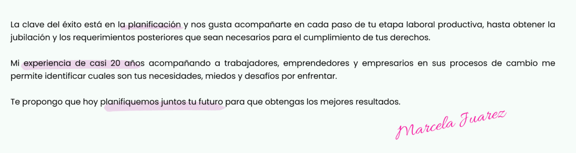 Desde mis comienzos en el año 2007 me aboque al Derecho Previsional y Laboral asesorando a particulares y emprendimientos en distintos procesos activos hasta llegar a la pasividad.